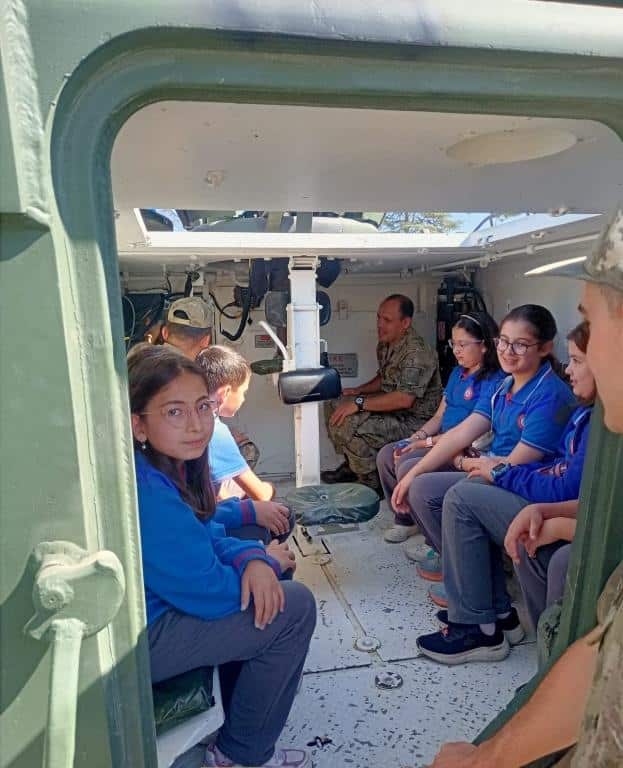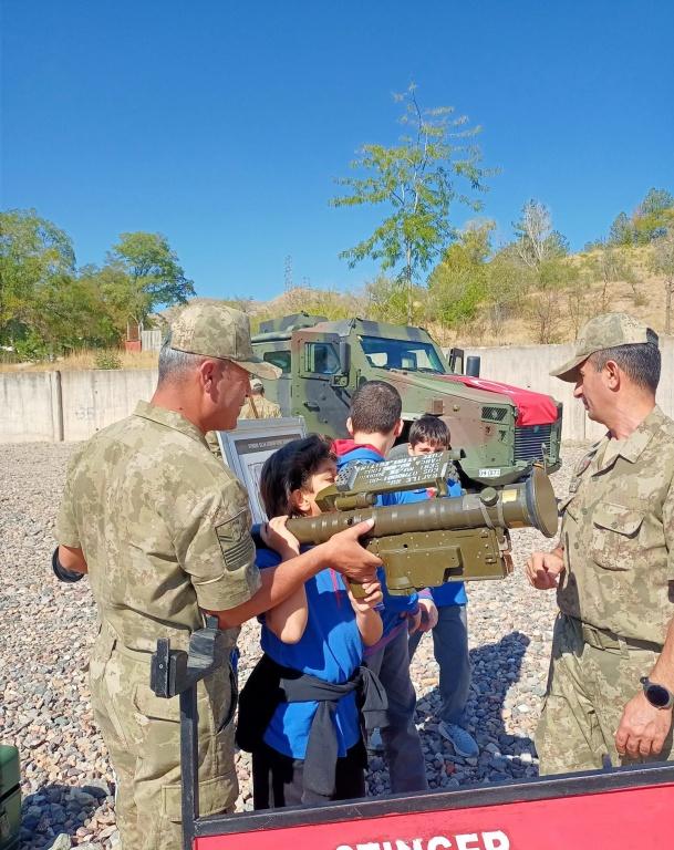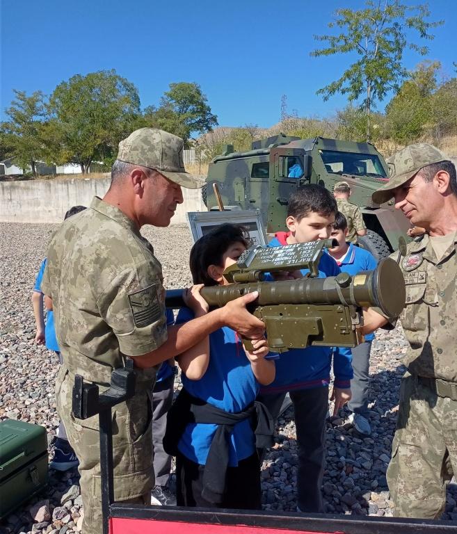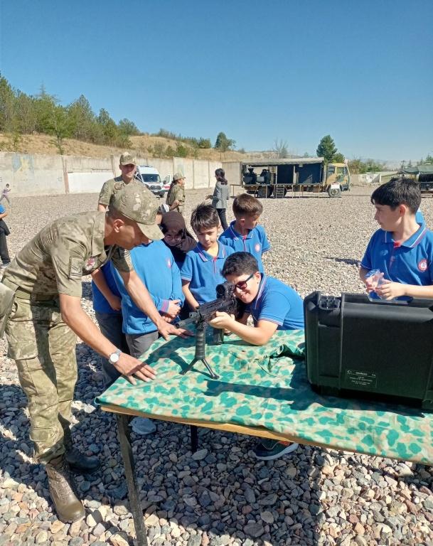 Görevli askerlerimiz tarafından öğrencilerimize askeri araç sergi alanında bilgilendirme yapıldı.