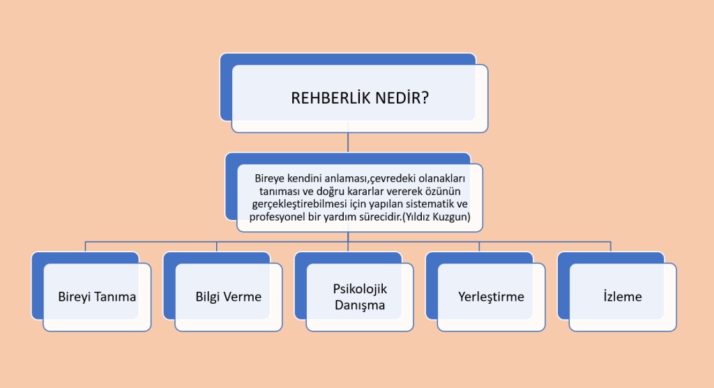 Rehberlik, bireyin kendini anlaması, problemlerini çözmesi, gerçekçi  kararlar  alması, kapasitelerini geliştirmesi, çevresine dengeli ve sağlıklı bir uyum yapması ve böylece kendini gerçekleştirmesi için, uzman kişilerce bireye yapılan psikolojik yardımlardır. Eğitim süreci içinde rehberlik hizmetleri, öğrencinin gelişmesine ve uyumuna yardım etmeye yöneliktir. Rehberliğin temel ya da nihai amacı bireyin kendini gerçekleştirmesidir.